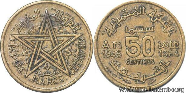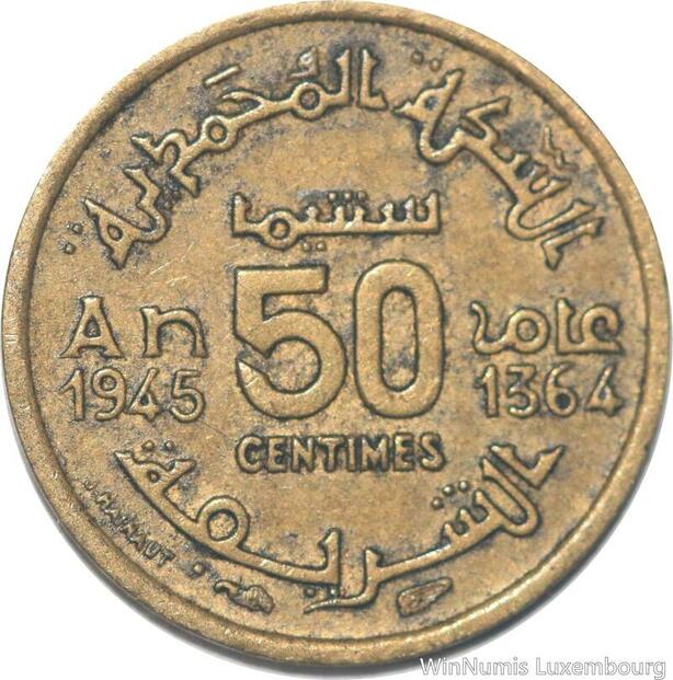 R7905 Morocco 50 Centimes Mohammed V AH 1364 1945 A Paris AU -> Make offer