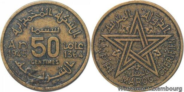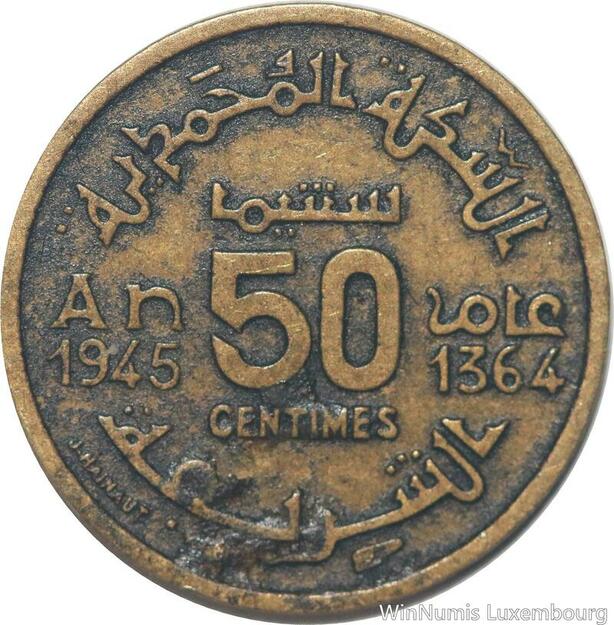 R7909 Morocco 50 Centimes Mohammed V AH 1364 1945 A Paris -> Make offer