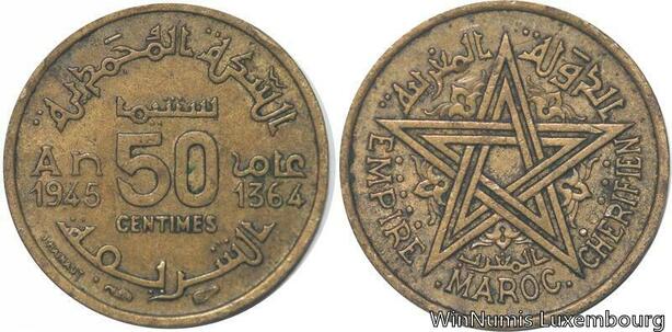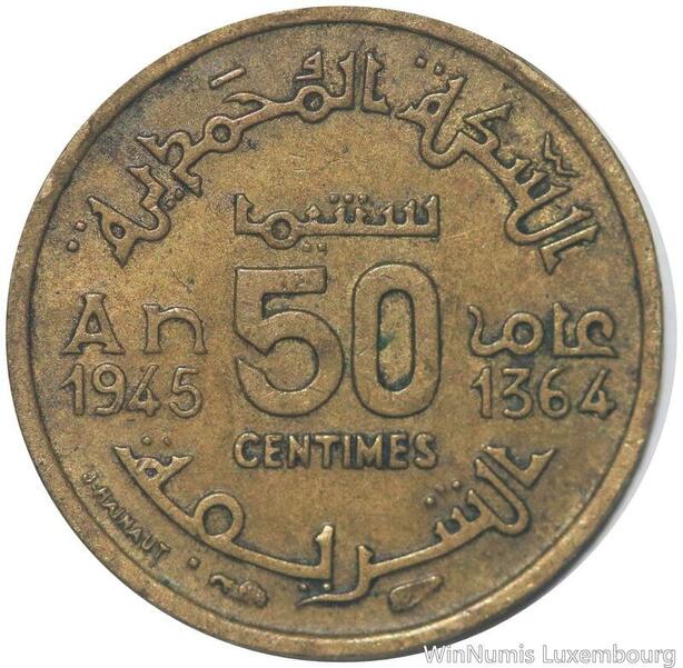 R7911 Morocco 50 Centimes Mohammed V AH 1364 1945 A Paris -> Make offer