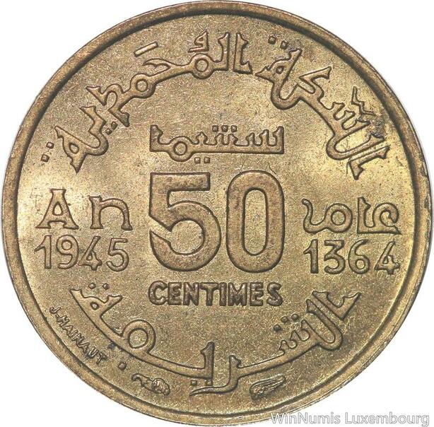 R7913 Morocco 50 Centimes Mohammed V AH 1364 1945 A Paris AU -> Make offer