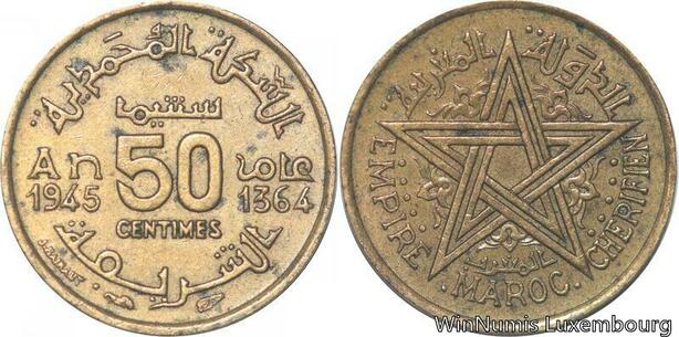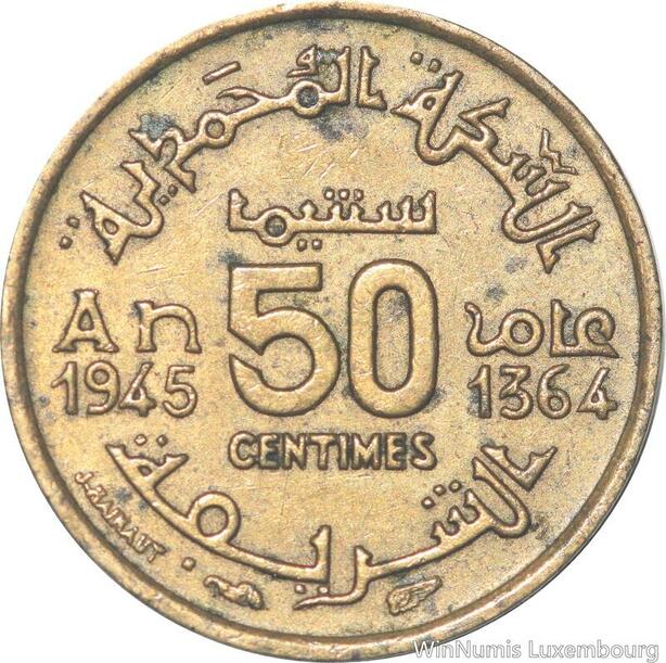 R7917 Morocco 50 Centimes Mohammed V AH 1364 1945 A Paris -> Make offer