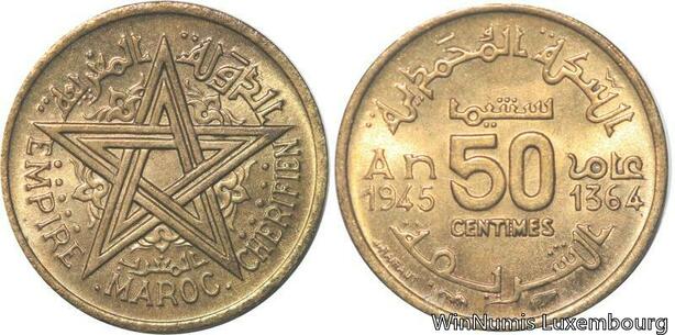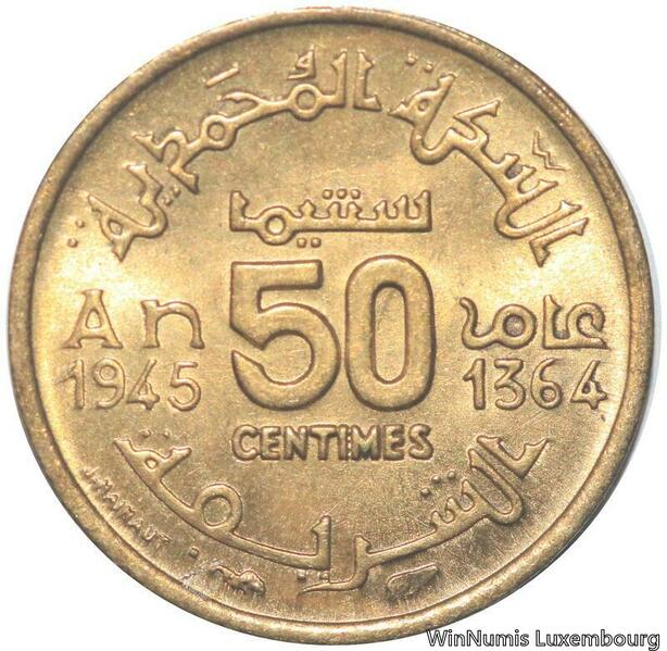 R7918 Morocco 50 Centimes Mohammed V AH 1364 1945 A Paris UNC -> Make offer