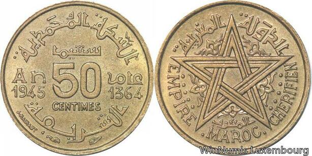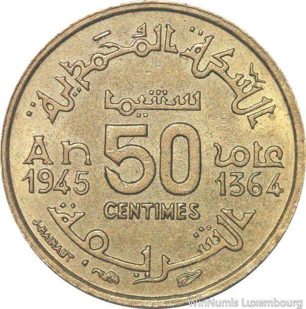 R7920 Morocco 50 Centimes Mohammed V AH 1364 1945 A Paris AU -> Make offer