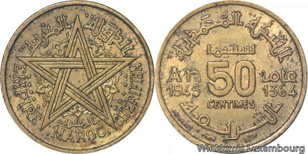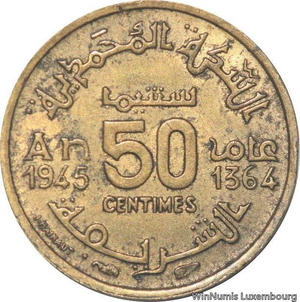 R7923 Morocco 50 Centimes Mohammed V AH 1364 1945 A Paris -> Make offer