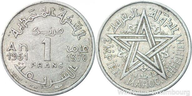 R7939 Morocco 1 Franc Mohammed V AH 1370 1951 A Paris -> Make offer