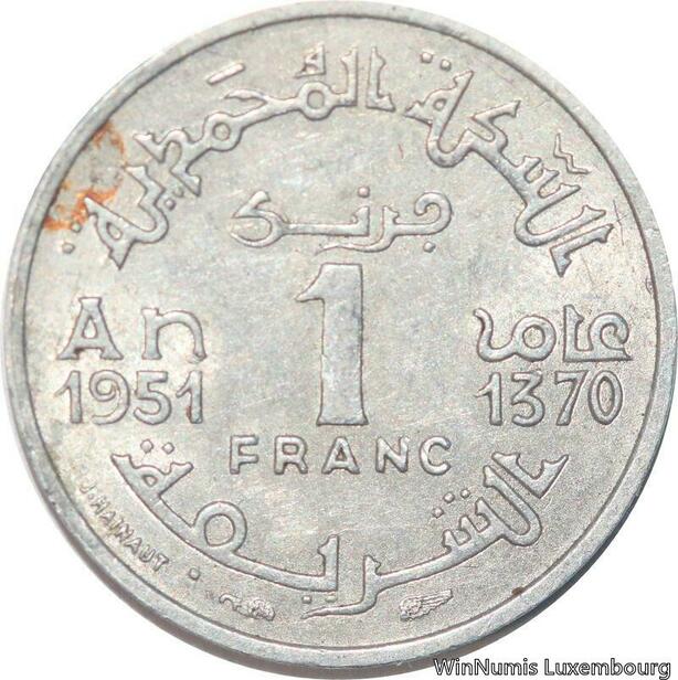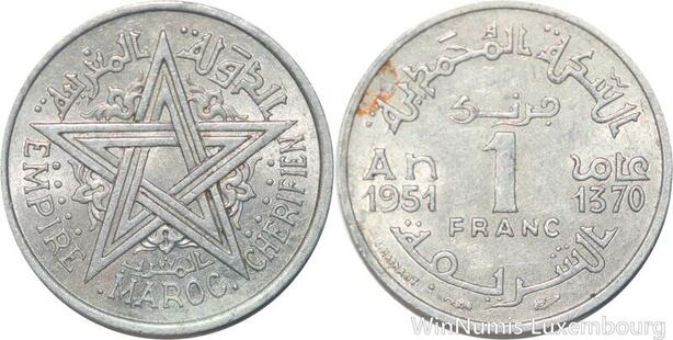 R7943 Morocco 1 Franc Mohammed V AH 1370 1951 A Paris -> Make offer