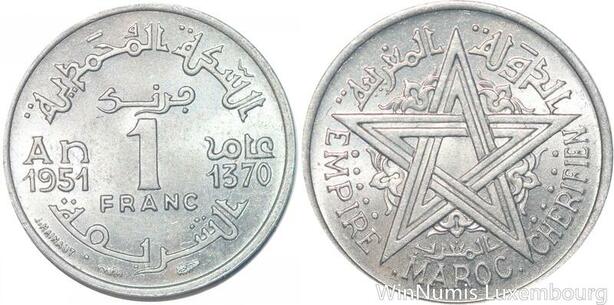 R7947 Morocco 1 Franc Mohammed V AH 1370 1951 A Paris UNC -> Make offer