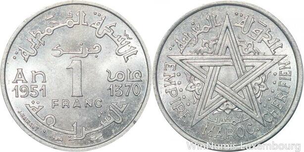 R7953 Morocco 1 Franc Mohammed V AH 1370 1951 A Paris UNC -> Make offer