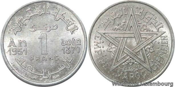 R7955 Morocco 1 Franc Mohammed V AH 1370 1951 A Paris AU+ -> Make offer
