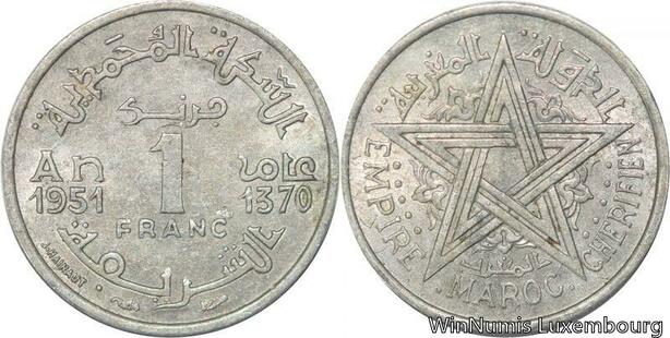 R7957 Morocco 1 Franc Mohammed V AH 1370 1951 A Paris -> Make offer
