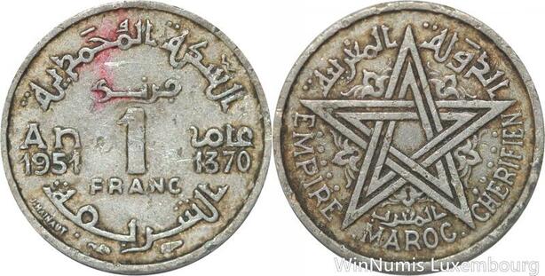 R7963 Morocco 1 Franc Mohammed V AH 1370 1951 A Paris -> Make offer