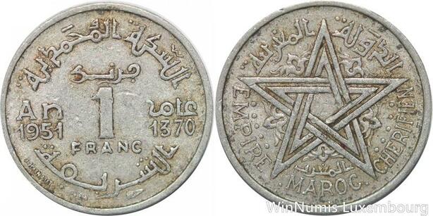 R7964 Morocco 1 Franc Mohammed V AH 1370 1951 A Paris -> Make offer