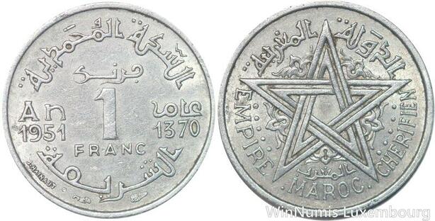 R7974 Morocco 1 Franc Mohammed V AH 1370 1951 A Paris -> Make offer