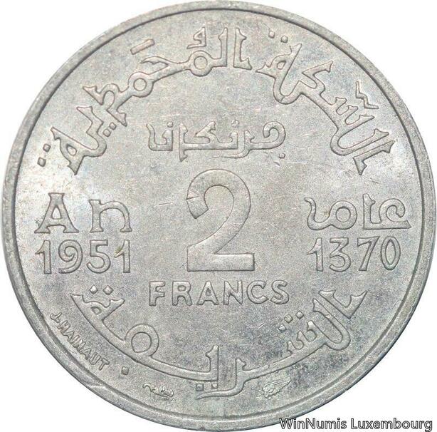 R7975 Morocco 2 Francs Mohammed V AH 1370 1951 A Paris AU -> Make offer