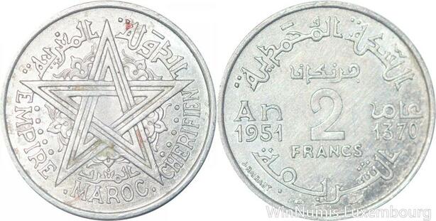 R7983 Morocco 2 Francs Mohammed V AH 1370 1951 A Paris -> Make offer