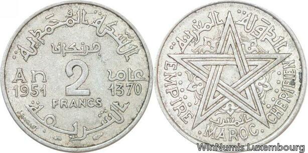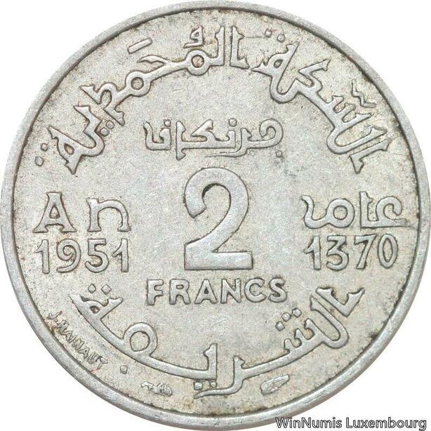 R7986 Morocco 2 Francs Mohammed V AH 1370 1951 A Paris -> Make offer