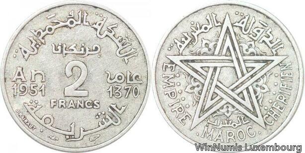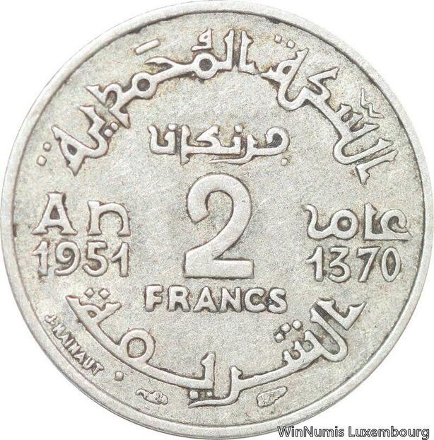 R7990 Morocco 2 Francs Mohammed V AH 1370 1951 A Paris -> Make offer