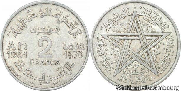 R7992 Morocco 2 Francs Mohammed V AH 1370 1951 A Paris -> Make offer