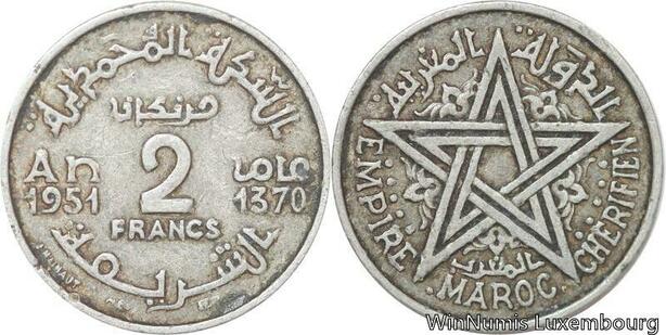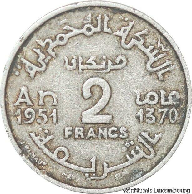 R7993 Morocco 2 Francs Mohammed V AH 1370 1951 A Paris -> Make offer