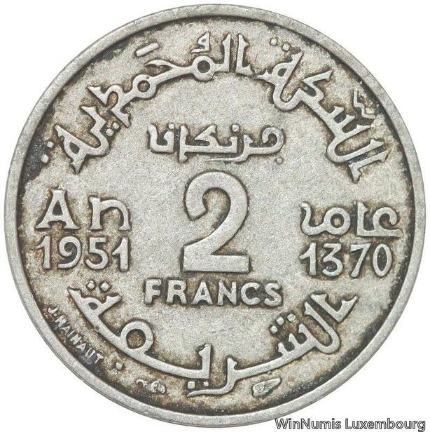 R7995 Morocco 2 Francs Mohammed V AH 1370 1951 A Paris -> Make offer