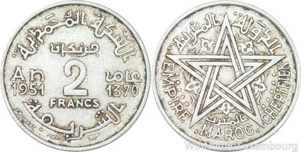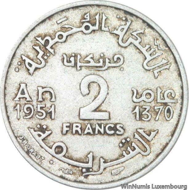 R7996 Morocco 2 Francs Mohammed V AH 1370 1951 A Paris -> Make offer