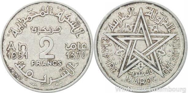 R7997 Morocco 2 Francs Mohammed V AH 1370 1951 A Paris -> Make offer