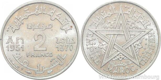 R7999 Morocco 2 Francs Mohammed V AH 1370 1951 A Paris -> Make offer