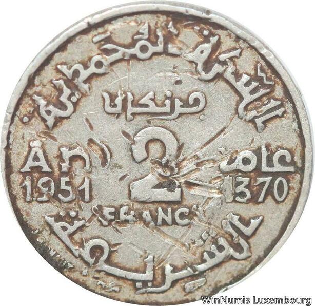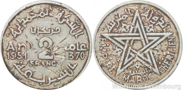 R8000 Morocco 2 Francs Mohammed V AH 1370 1951 A Paris -> Make offer