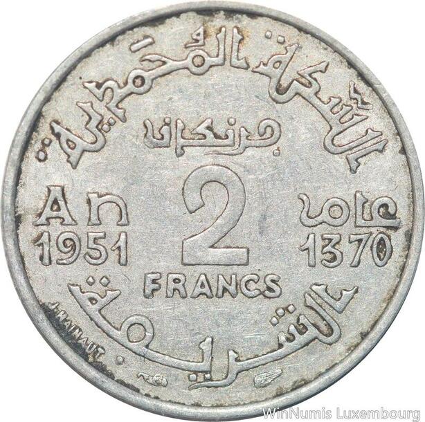 R8002 Morocco 2 Francs Mohammed V AH 1370 1951 A Paris -> Make offer