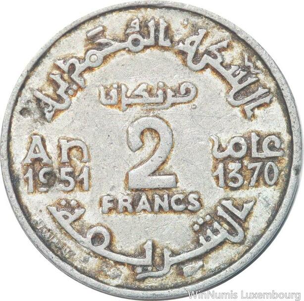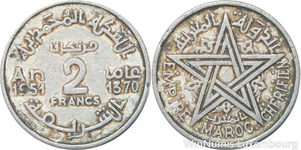 R8004 Morocco 2 Francs Mohammed V AH 1370 1951 A Paris -> Make offer