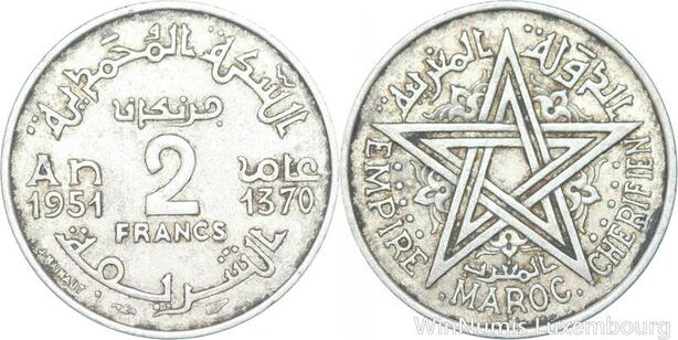R8007 Morocco 2 Francs Mohammed V AH 1370 1951 A Paris -> Make offer