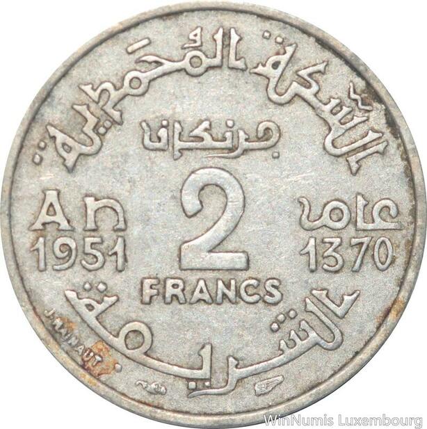 R8008 Morocco 2 Francs Mohammed V AH 1370 1951 A Paris -> Make offer
