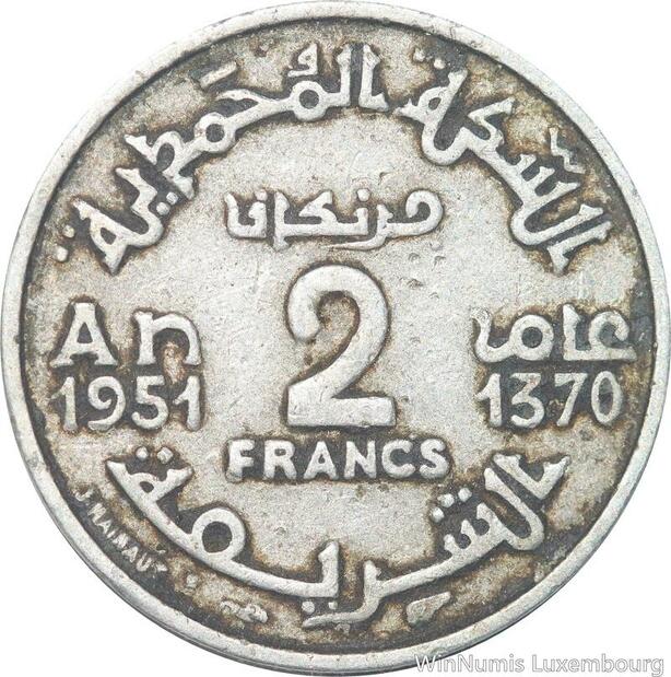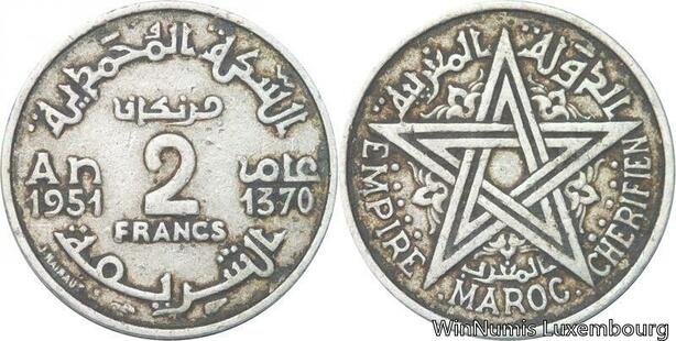 R8011 Morocco 2 Francs Mohammed V AH 1370 1951 A Paris -> Make offer