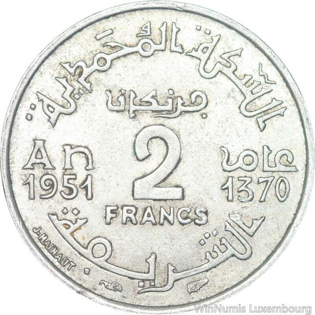 R8013 Morocco 2 Francs Mohammed V AH 1370 1951 A Paris AU -> Make offer