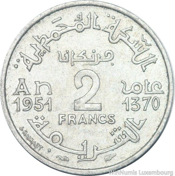 R8014 Morocco 2 Francs Mohammed V AH 1370 1951 A Paris AU -> Make offer