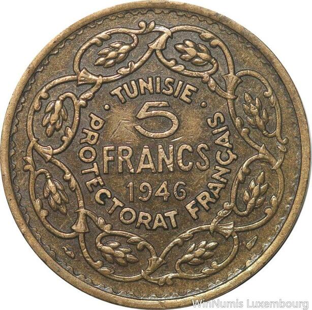R8029 Tunisie 5 Francs Muhammad VIII AH 1365 1946 -> Make offer