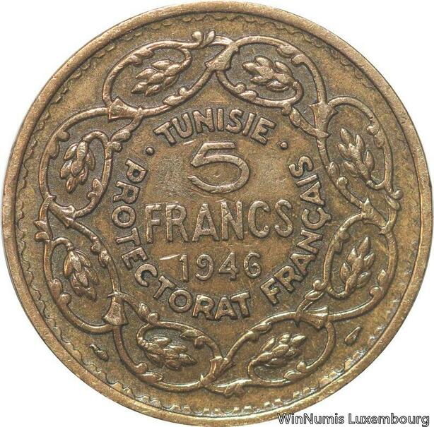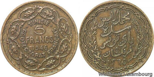 R8031 Tunisie 5 Francs Muhammad VIII AH 1365 1946 -> Make offer