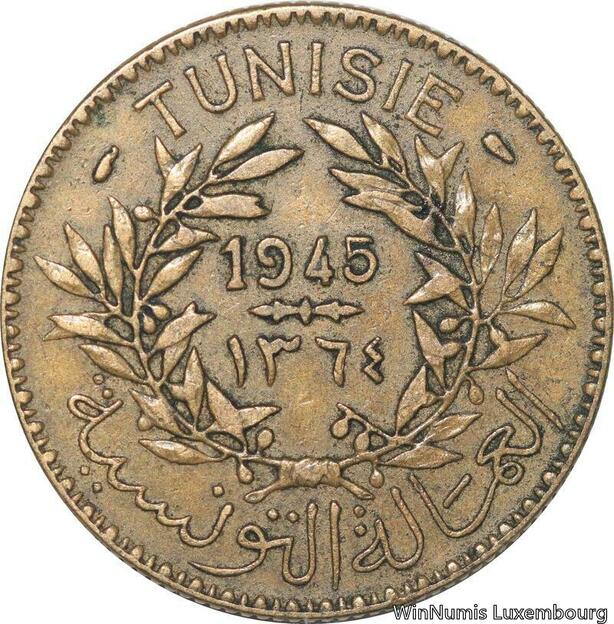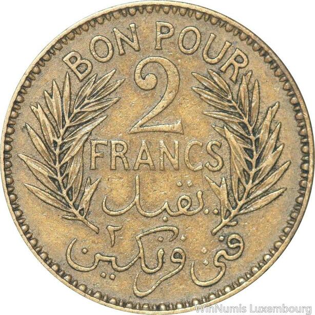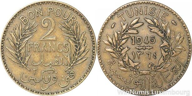 R8043 Tunisia 2 Francs AH 1365 1945 A Paris -> Make offer