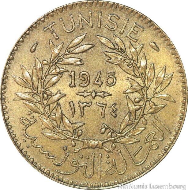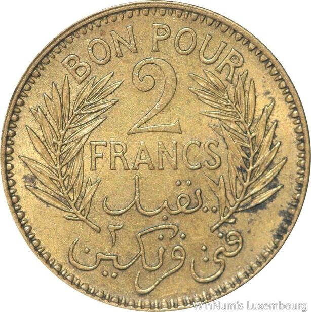 R8044 Tunisia 2 Francs AH 1365 1945 A Paris AU -> Make offer
