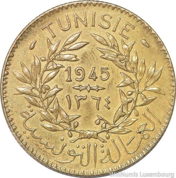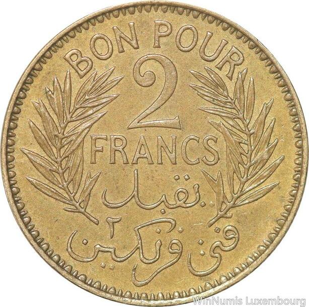 R8047 Tunisia 2 Francs AH 1365 1945 A Paris AU -> Make offer