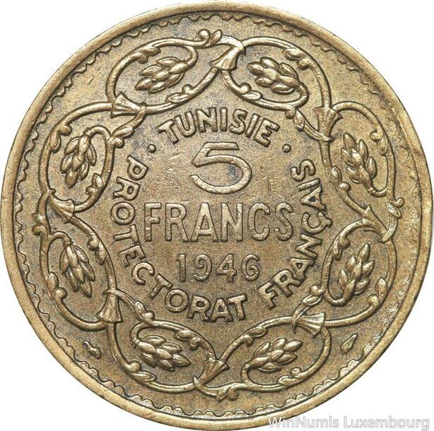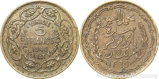 R8050 Tunisie 5 Francs Muhammad VIII AH 1365 1946 -> Make offer