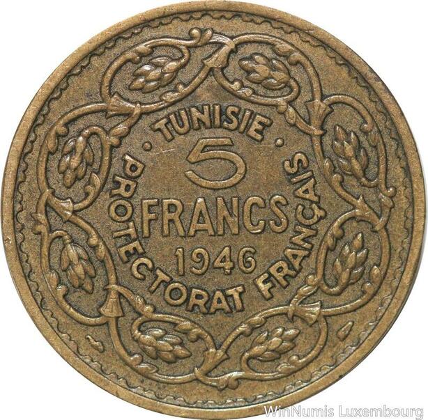 R8056 Tunisie 5 Francs Muhammad VIII AH 1365 1946 -> Make offer