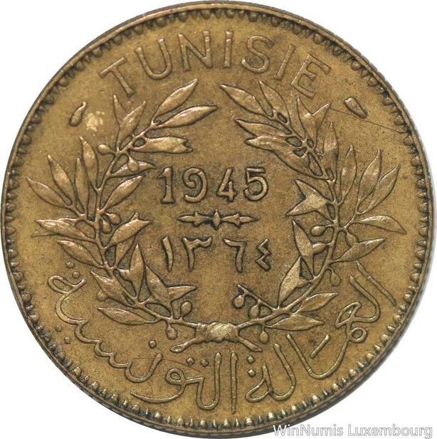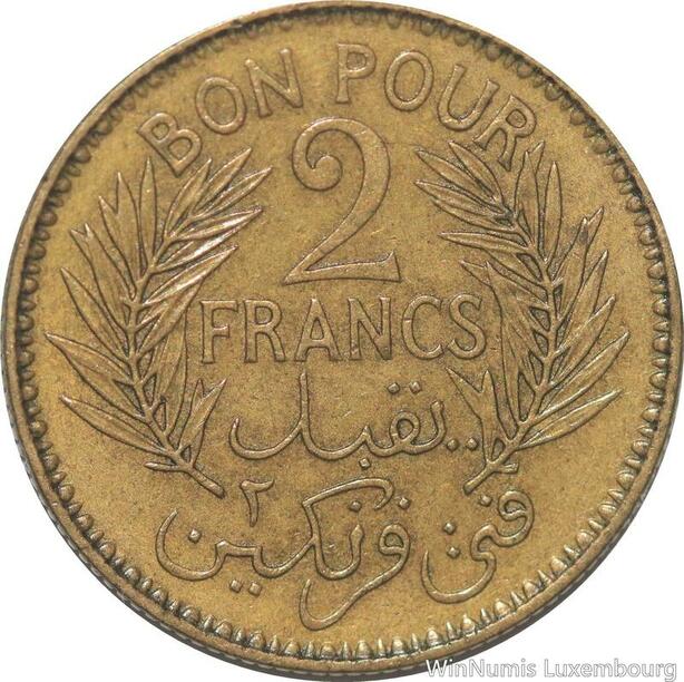 R8060 Tunisia 2 Francs AH 1365 1945 A Paris -> Make offer