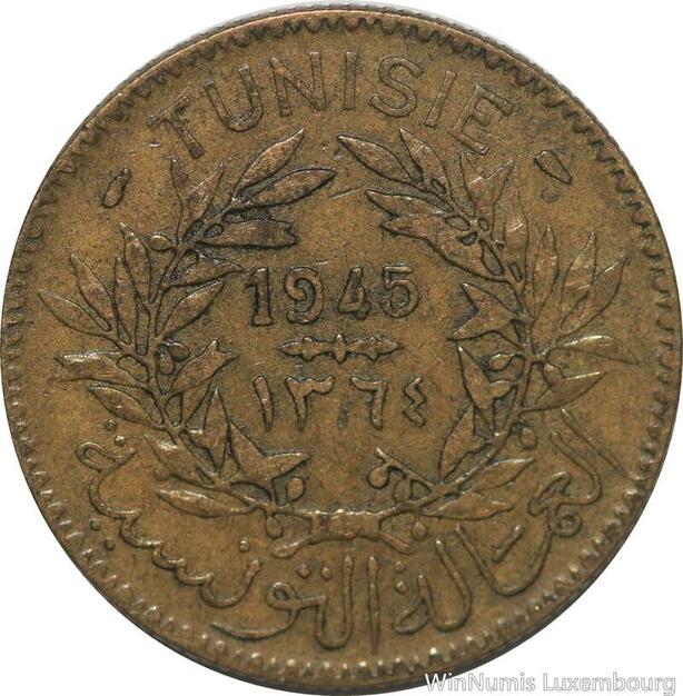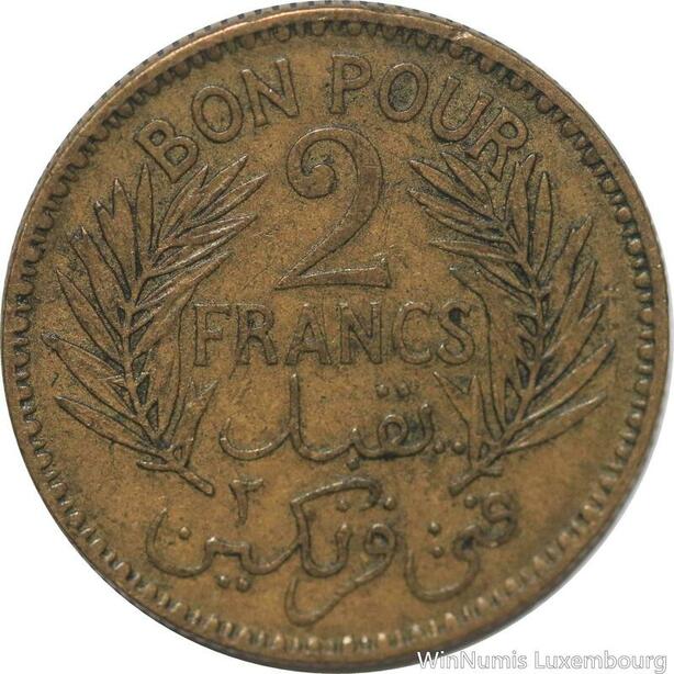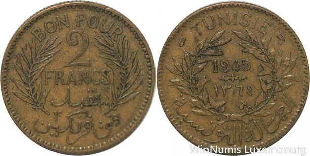 R8061 Tunisia 2 Francs AH 1365 1945 A Paris -> Make offer