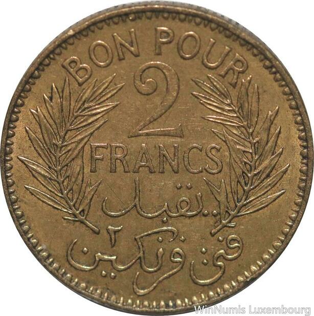 R8065 Tunisia 2 Francs AH 1360 1941 A Paris -> Make offer
