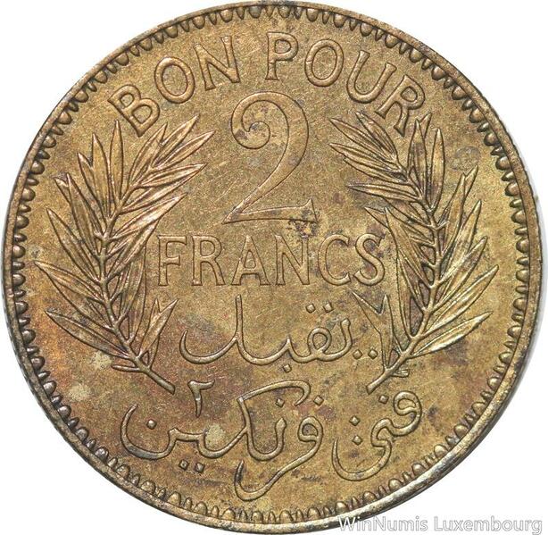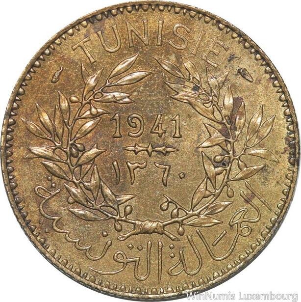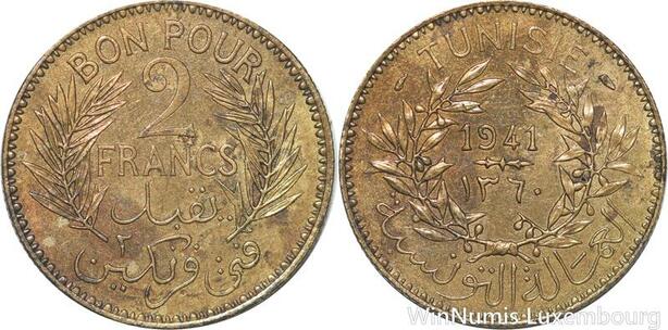 R8068 Tunisia 2 Francs AH 1360 1941 A Paris AU -> Make offer