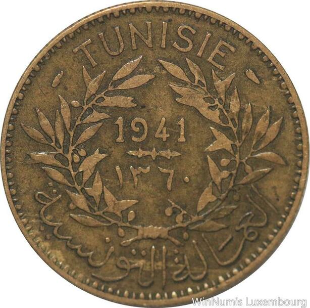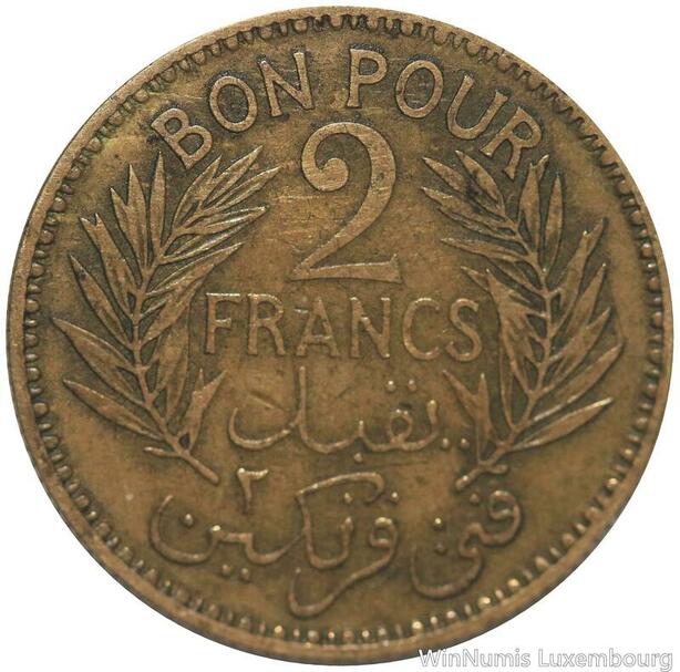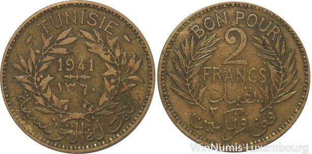 R8069 Tunisia 2 Francs AH 1360 1941 A Paris -> Make offer