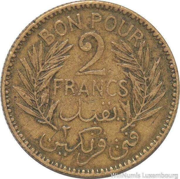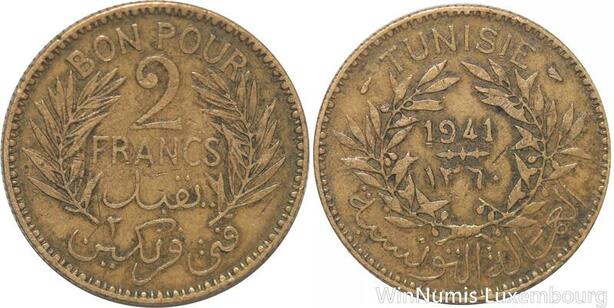 R8070 Tunisia 2 Francs AH 1360 1941 A Paris -> Make offer