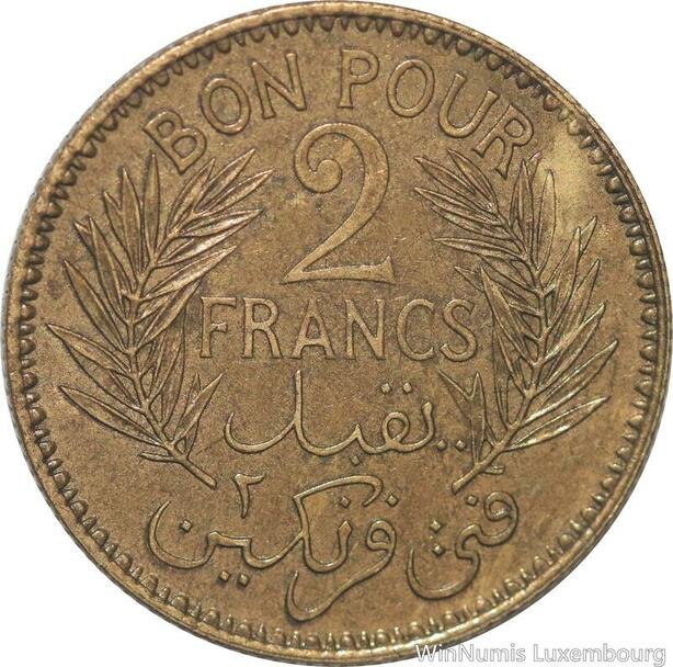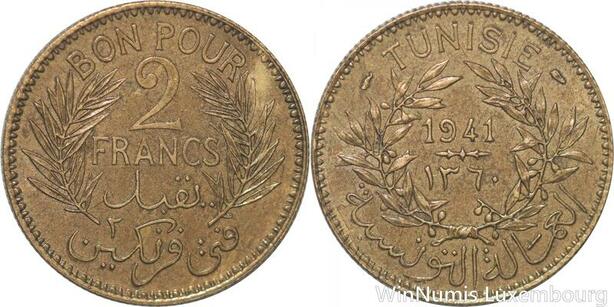 R8073 Tunisia 2 Francs AH 1360 1941 A Paris -> Make offer