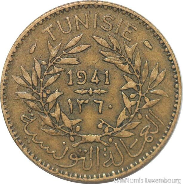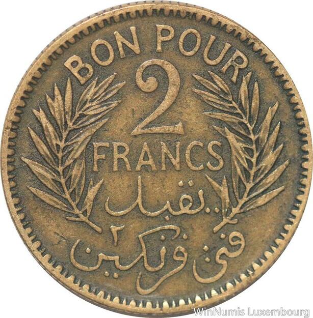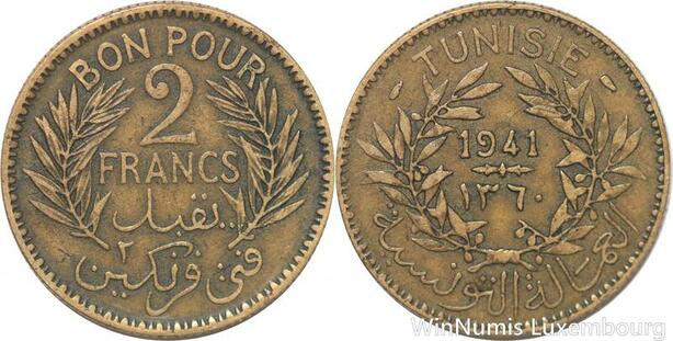 R8074 Tunisia 2 Francs AH 1360 1941 A Paris -> Make offer